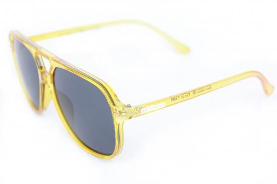 透明感のあるグロス仕上げのイエローフレームに、ホワイトのHAPPY HOURロゴをテンプルにプリント。夏の陽射しに映える鮮やかでポップな印象を与えるモデルです。