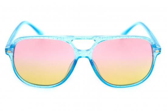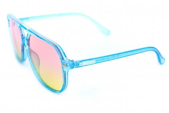 透明感のあるグロスブルーフレームにはスパークル(ラメ)入り。テンプルにはホワイトのHAPPY HOURロゴがプリントされています。ラメ入りのフレームは光の当り方で表情を変えてくれるので、遊び心のある印象をプラスしてくれます。