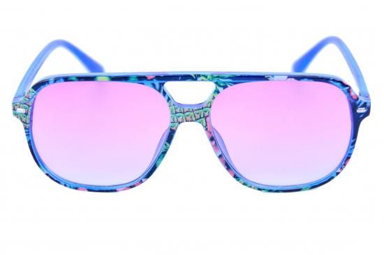 バケーションの空気感をまとった、遊び心たっぷりのモデル「Mai Tai Monday」は、トロピカルプリントを施した透明感のあるグロスブルーフレームを採用。テンプルにはホワイトのHAPPY HOURロゴをプリントされています。