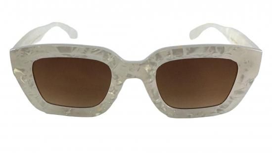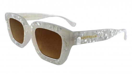 上品な光沢を放つグロスパールのポリカーボネート製フレームに、神秘的な海底をイメージしたUV400アンバーレンズを組み合わせた高級感のある1本。クラシックなシルエットにパールの質感が加わることで、気品と個性を兼ね備えた仕上がりに。