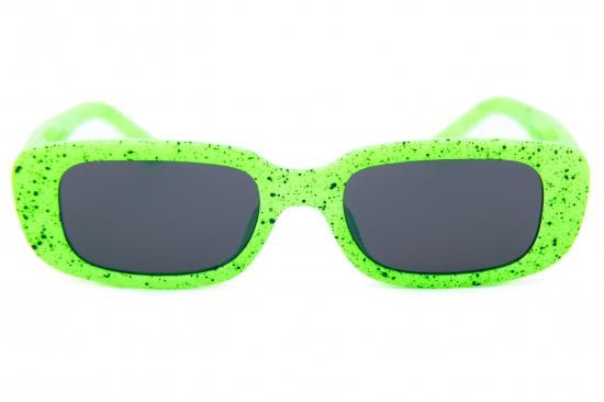 眩しいほど鮮やかなネオングリーンに、ブラックのスプラッターパターンをあしらった超個性派フレーム。