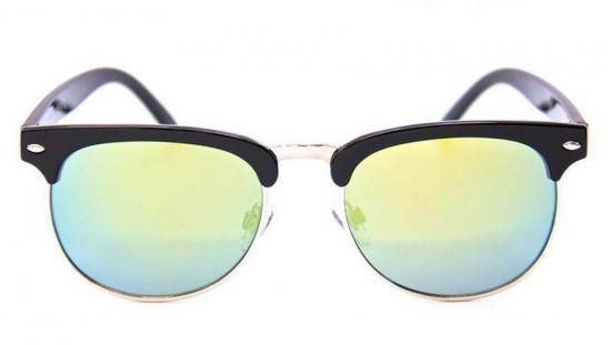 艶やかなグロスブラックのクラブマスター型ポリカーボネートフレームに、繊細なゴールドメタルリムをあしらったラグジュアリーな一本。