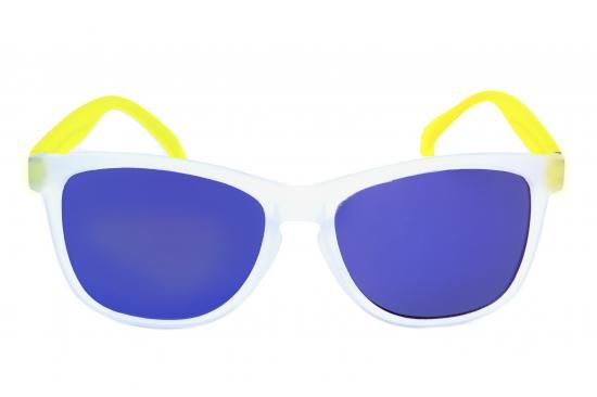 Electric Bananaは、その名のとおり、視線をさらっていくフロステッドクリア×マットイエローのツートーンフレームが魅力のMambasモデル。