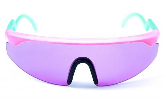 クリアなパープルレンズはUV400対応で、強い日差しから目を守りながらも視界を柔らかく彩ります。