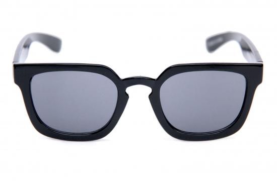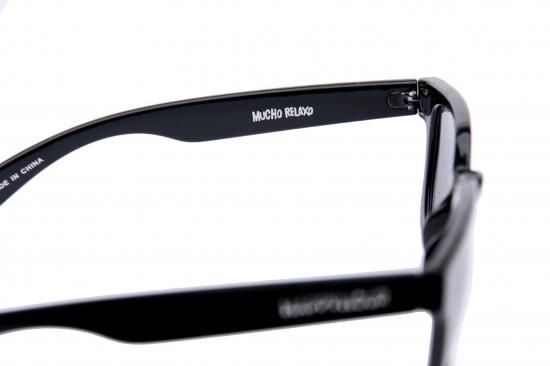 品のあるグロスブラックのポリカーボネートフレーム、テンプルにはHappy Hourのロゴ入り。