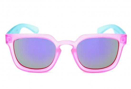フロステッド仕様のクリアピンクフロントに、シーグラスブルーのテンプルを組み合わせた、軽やかで遊び心のある1本。