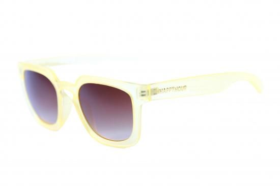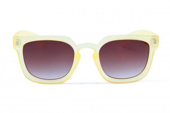 氷を思わせる涼しげな透明感が印象的なマルガリータイエローのポリカーボネートフレームに、UV400のインパクトレジスタント・アンバーグラデーションレンズを組み合わせた一本。