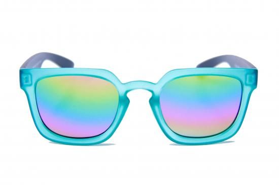 フロステッド・トランスペアレントのエレクトリックブルーフレームに、マットブラックのテンプルを組み合わせ、爽やかさと引き締まった印象を両立させたクールな一本。