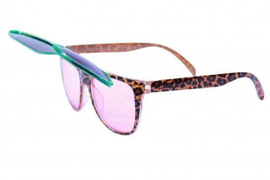 ベースとなるレオパードプリントのポリカーボネートフレームには、気分を高めてくれるUV400ブルーミングピンクのレンズを搭載。