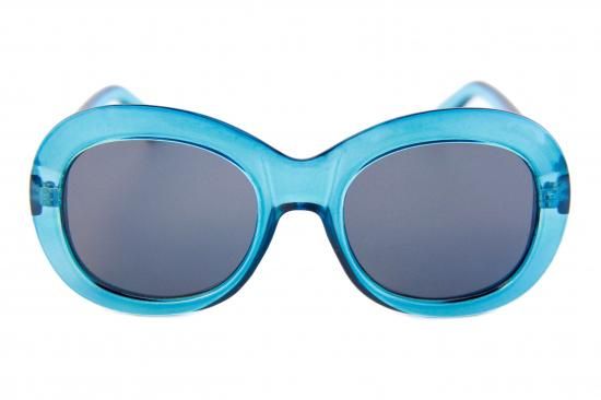 透明感のあるミスティックブルーのグロスポリカーボネートフレームは、レトロなラウンドシェイプでやわらかな印象を演出します。