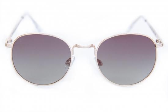 華奢なゴールドメタリックのワイヤーフレームに、淡くグラデーションのかかったアンバーポラライズドレンズを組み合わせた1本。