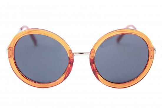 透明感のあるグロスオレンジのポリカーボネートフレームに、ゴールドメタリックのブリッジとテンプルを組み合わせ、暖かみのあるカラーリングにクラシックな華やかさをプラス。
